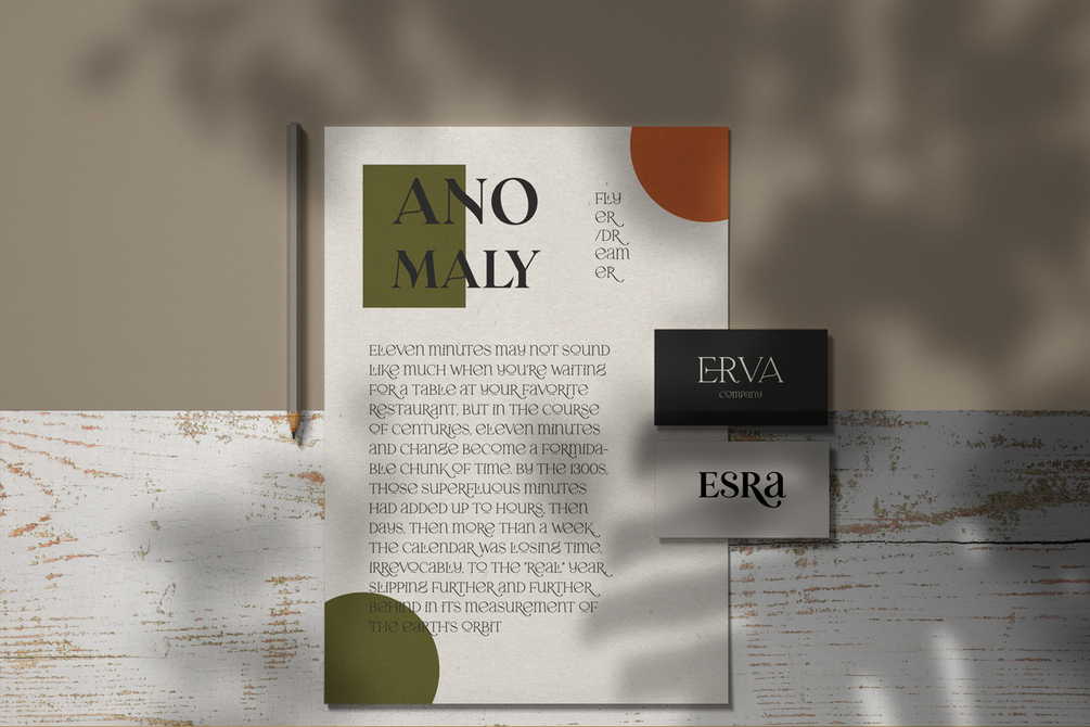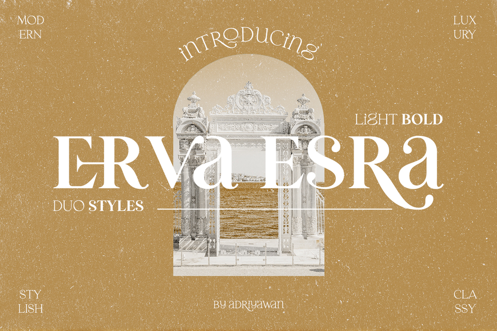 Introducing Erva Esra a modern quirky serif font with a stylish touch and Erva Esra has 2 styles Light and Bold. This font is perfect for the purposes of designing templates, brochures, videos, advertising branding, logos and more